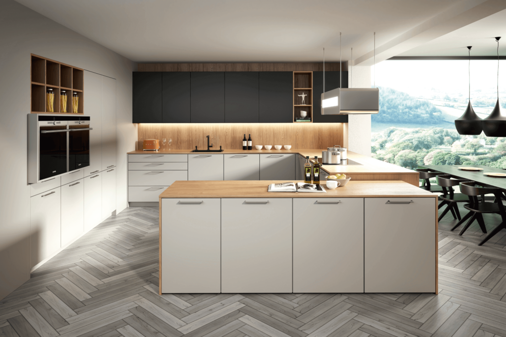 Vsestranski model La Corte – z ličnicami v mat laku in lak visokem sijaju; od toplih lesenih tonov do trendovske barve beton mat. Z veliko izbiro barv in možnostjo kombinacij z novimi vrhunskimi steklenimi omaricami ali drugimi dizajnerskimi malenkostmi lahko poudarite številne podrobnosti in si izpolnite vse kuhinjske sanje. Kuhinja lahko tako postane majhna oaza dobrega počutja, udobnega druženja in užitka – vse je mogoče.